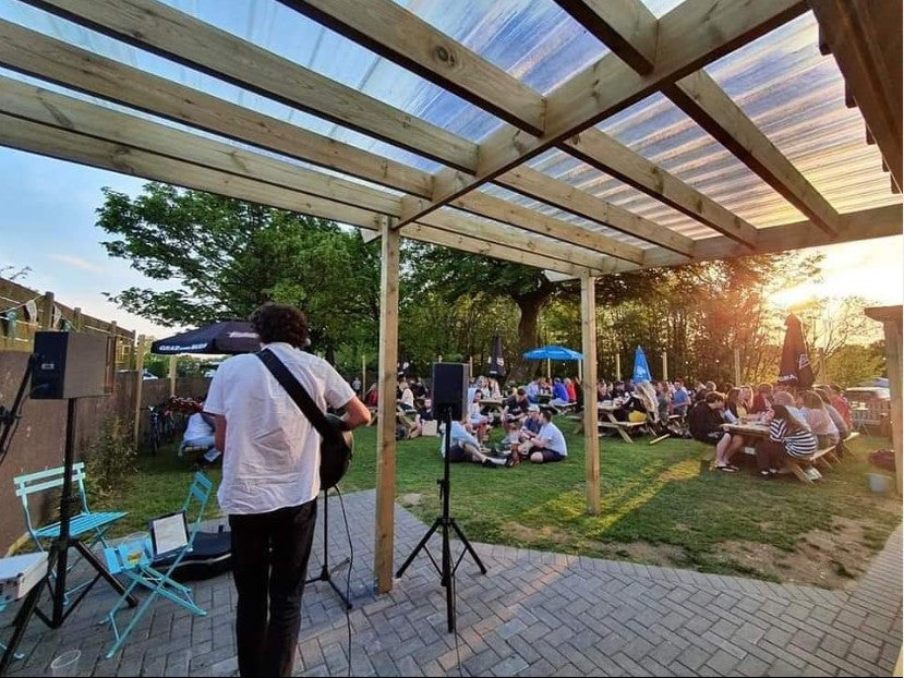 Freshly made pizzas, local pasties, breakfast baps, cakes, coffee, smoothies, and draft beers. Vegan & gluten-free options always available.