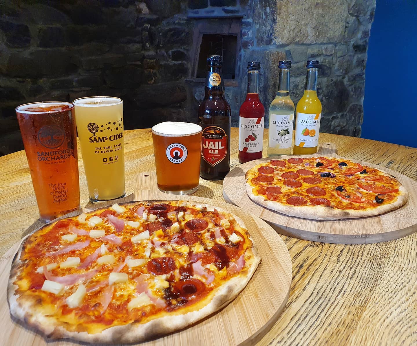 Freshly made pizzas, local pasties, breakfast baps, cakes, coffee, smoothies, and draft beers. Vegan & gluten-free options always available.